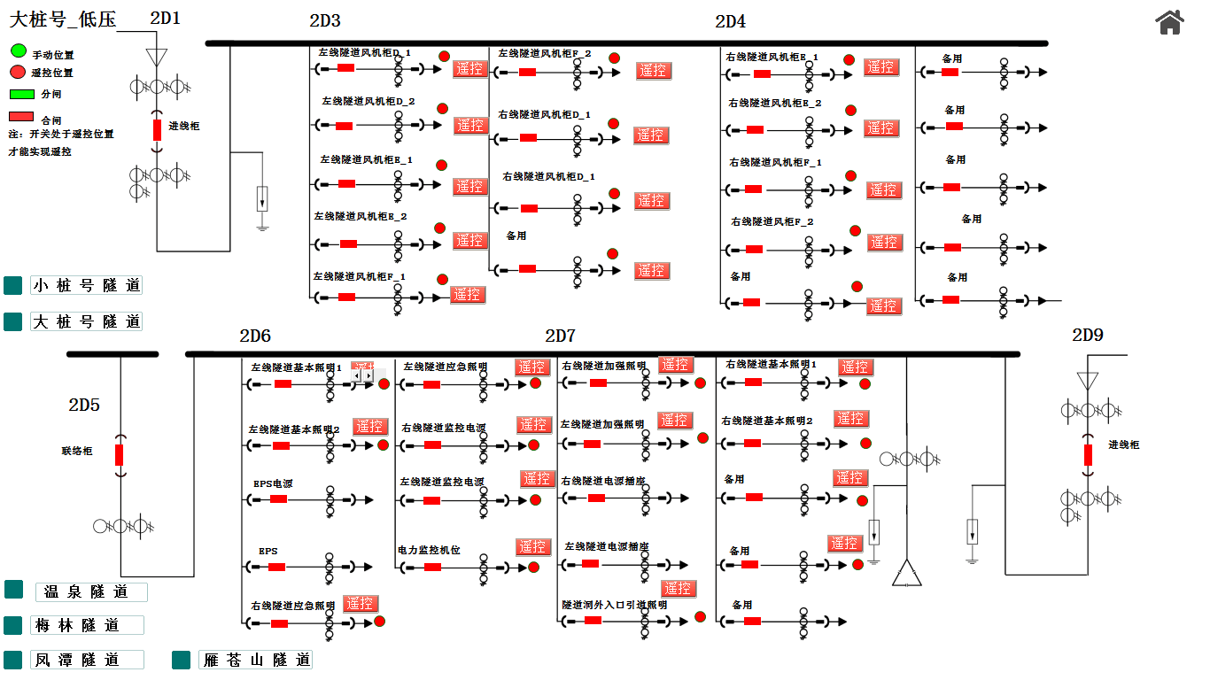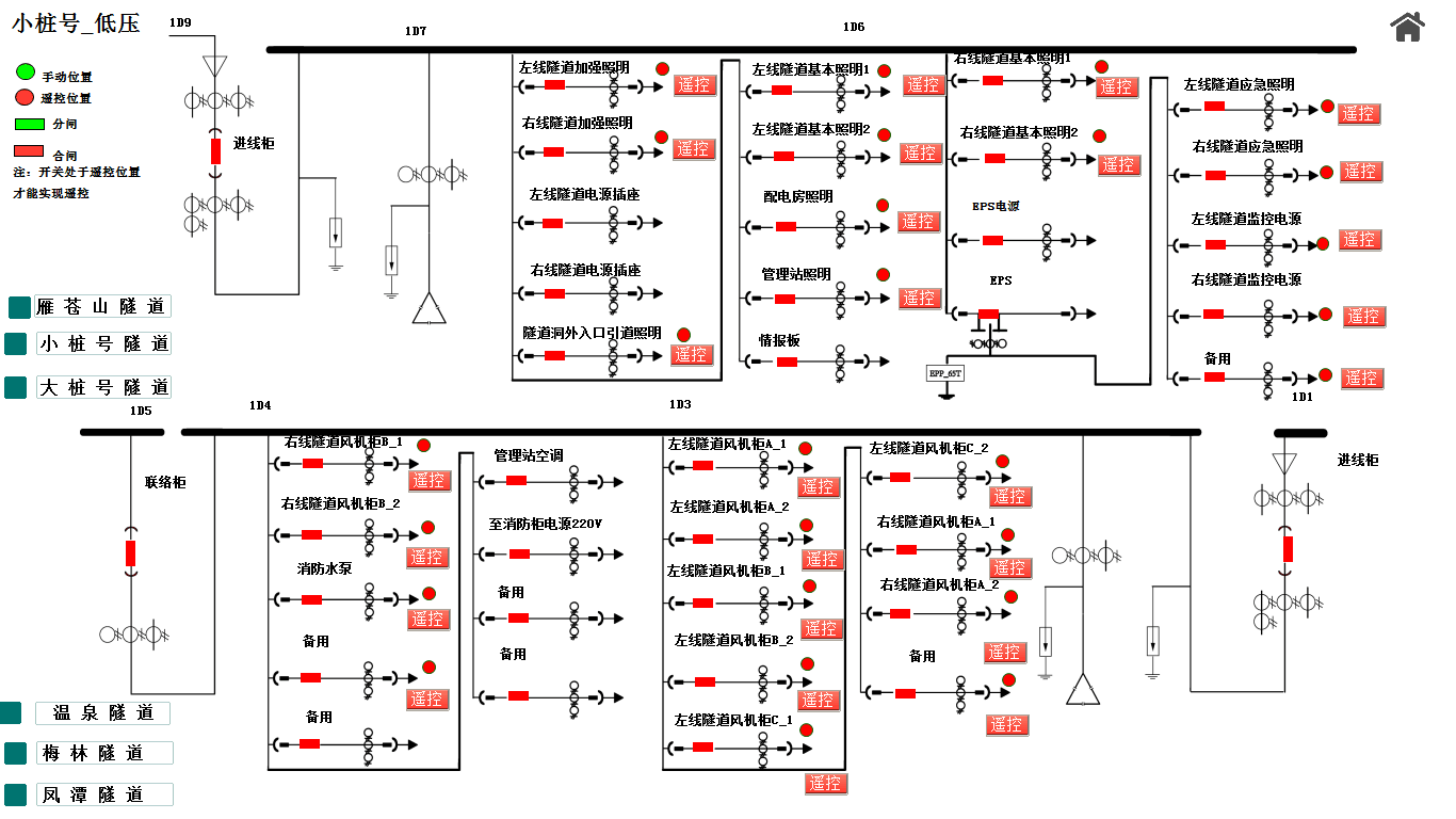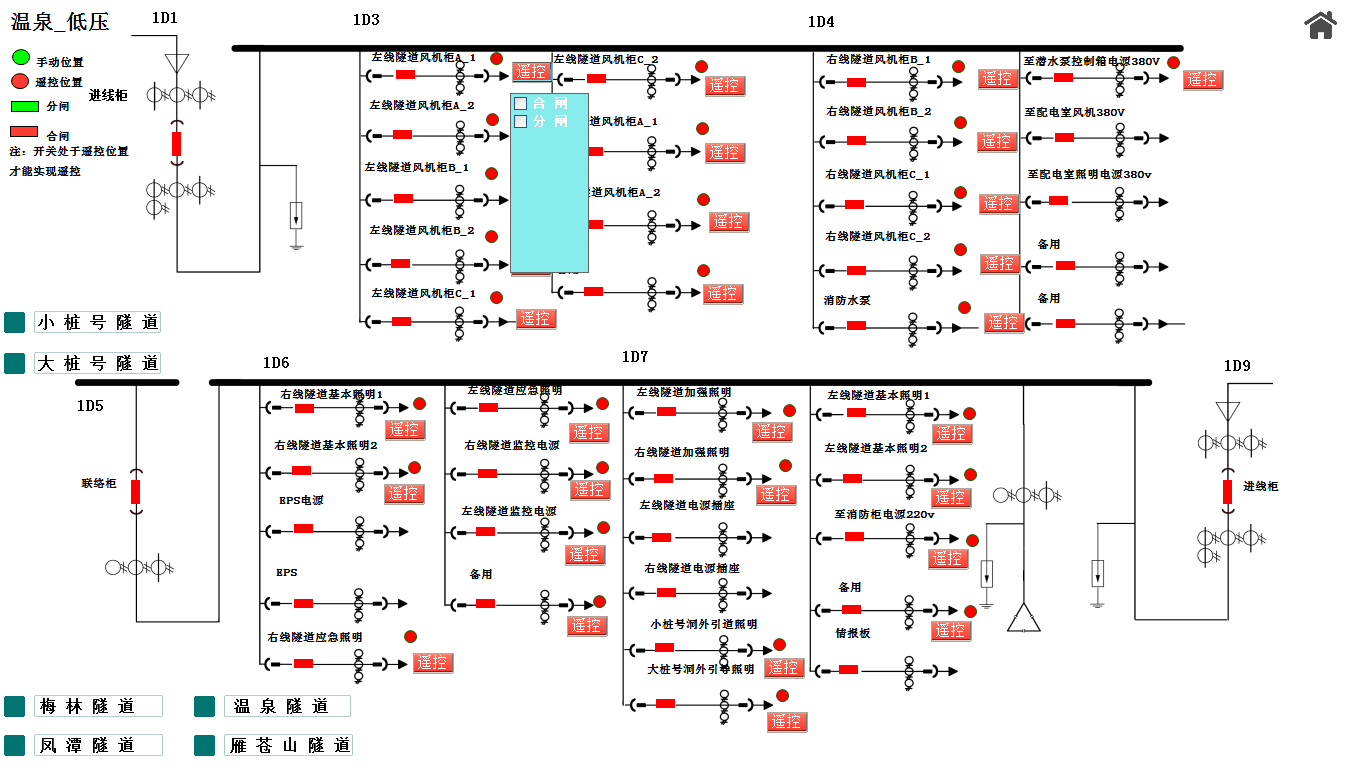 整个项目包括桐盘山大小桩号,温泉,雁苍山,梅林,凤潭六个部分, 共计240块多功能仪表,12块干式变压器,6个直流屏,6个EPS,6个ATS,6个FEPS,18块综保