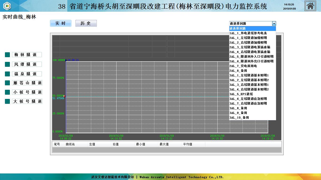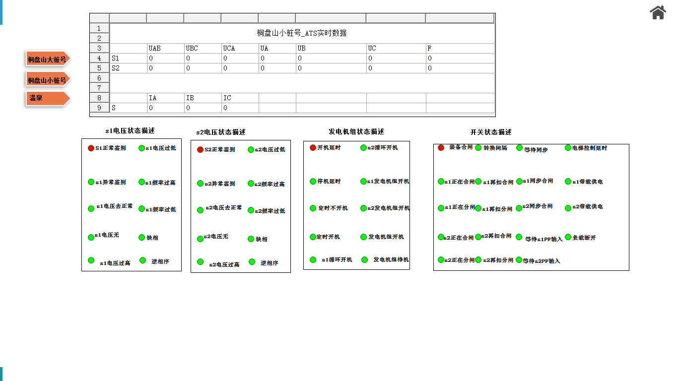 实时数据是完整显示系统设备的实时监测信息,按设备类型分成多个二级子项,如电力仪表、继电保护、直流、温控仪等。用table表、按接线回路方式呈现,清晰、直观的监测仪表实时信息。主接线图二级菜单,按区域划分为多个子项,单击任一子项,进入子项的系统主接线图。