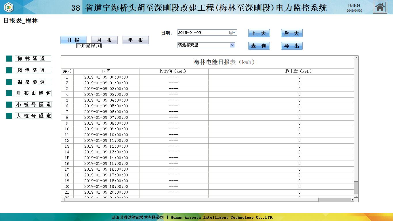 日报表,可以通过设定日期,以及楼层回路来查询当天内各个时段的抄表值和耗电量。