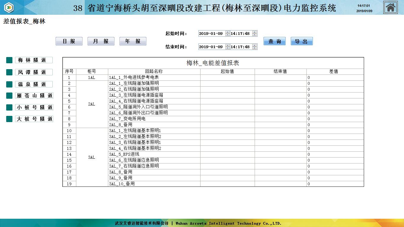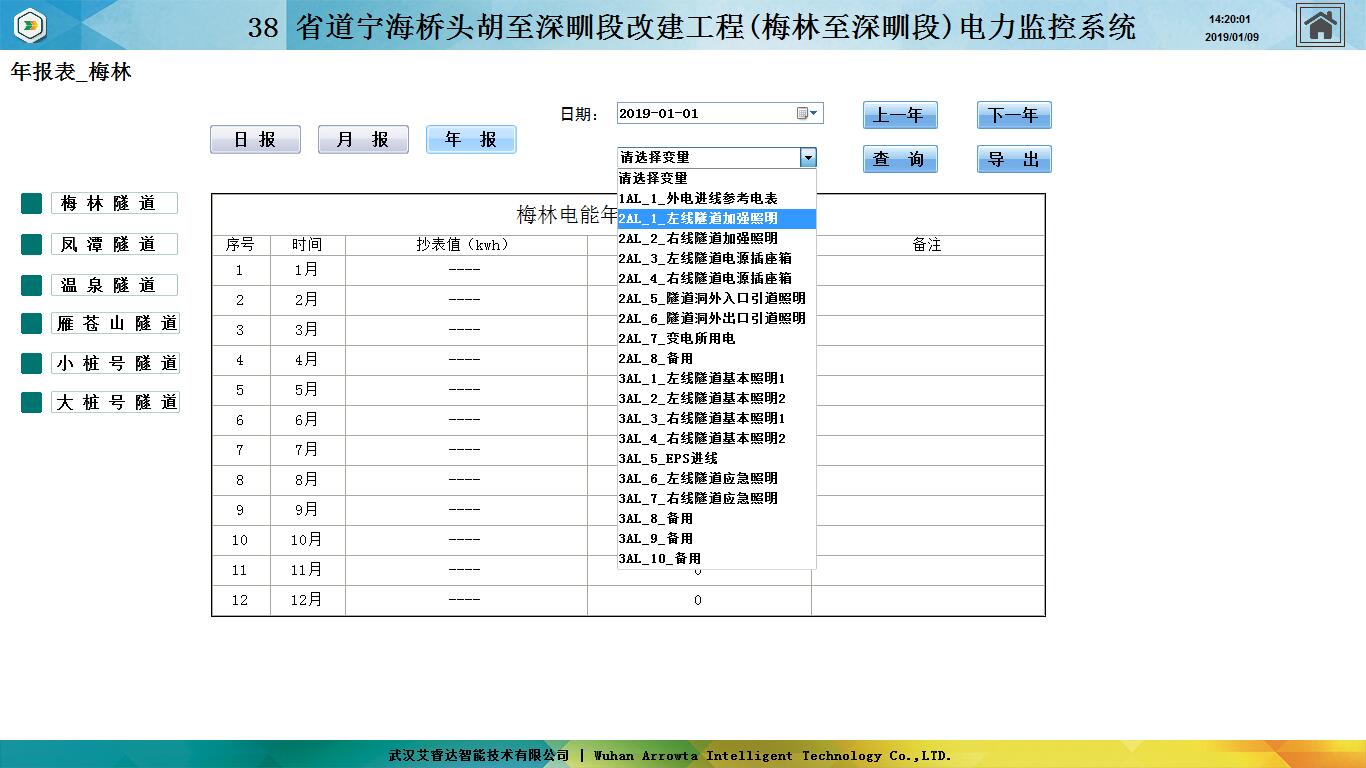 年报表,可以通过设定日期,以及楼层回路来查询当年每月的抄表值和耗电量。以年为周期,查询日期设定起始时间为每年的1月1号。