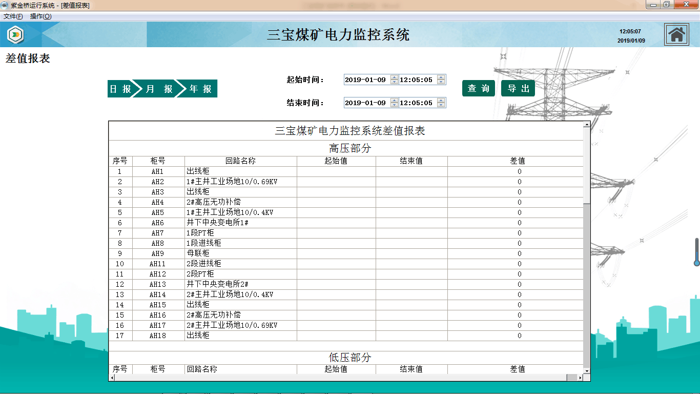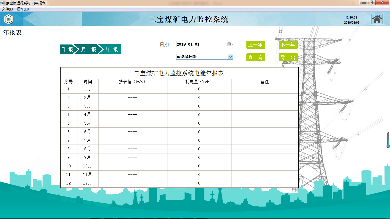 年报表,可以通过设定日期,以及楼层回路来查询当年每月的抄表值和耗电量。以年为周期,查询日期设定起始时间为每年的1月1号。