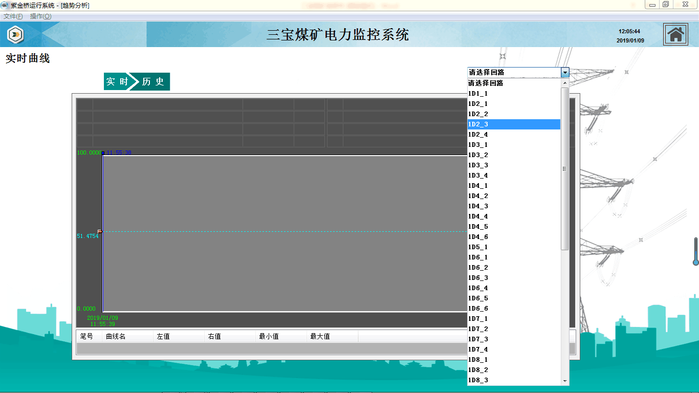 实时数据监视:模拟量数值、实时曲线;开关量状态。