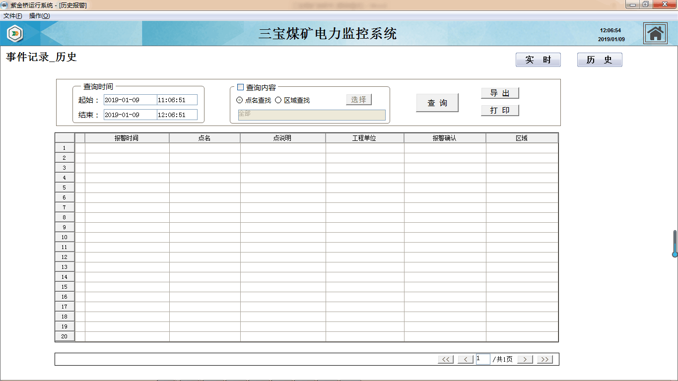 事件查询时对报警的存盘信息进行历史查询的功能,按设备类型分类,可以查询输入时间段的历史报警信息,进行事件追忆,达到分析和记录的目的,可以导出到excel表。