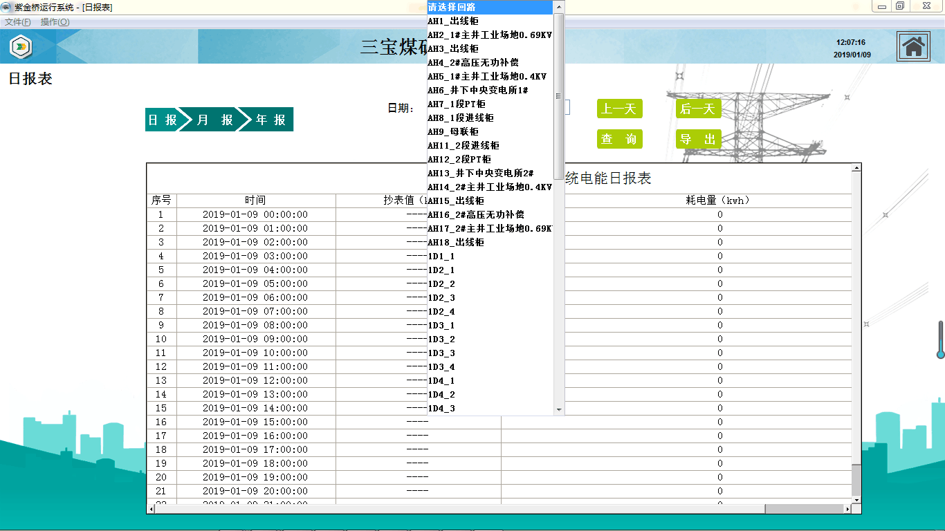 日报表,可以通过设定日期,以及楼层回路来查询当天内各个时段的抄表值和耗电量。