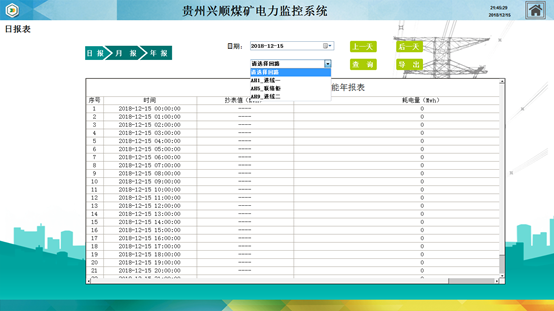 日报表,可以通过设定日期,以及楼层回路来查询当天内各个时段的抄表值和耗电量。