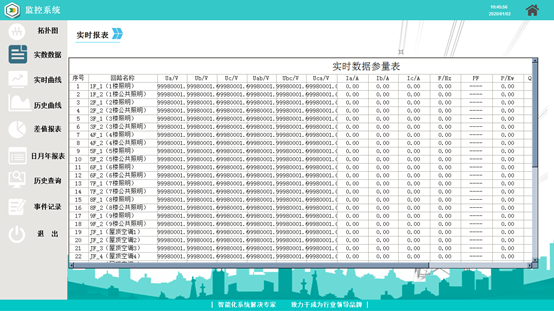 实时数据是完整显示系统设备的实时监测信息,用table表、按接线回路方式呈现,清晰、直观的回路电压,电流,电功率各项数据。