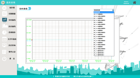 点击进入实时曲线之后,一般根据曲线表格右上方的选择框内选择需要查询的回路,即可显示所选对象的实时数据。