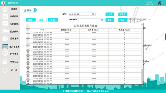 月报表,可以通过设定日期,以及回路来查询当月每天的抄表值和耗电量。以月为周期,查询日期建议设定起始时间为每个月的1号。(截止时间为30/31)