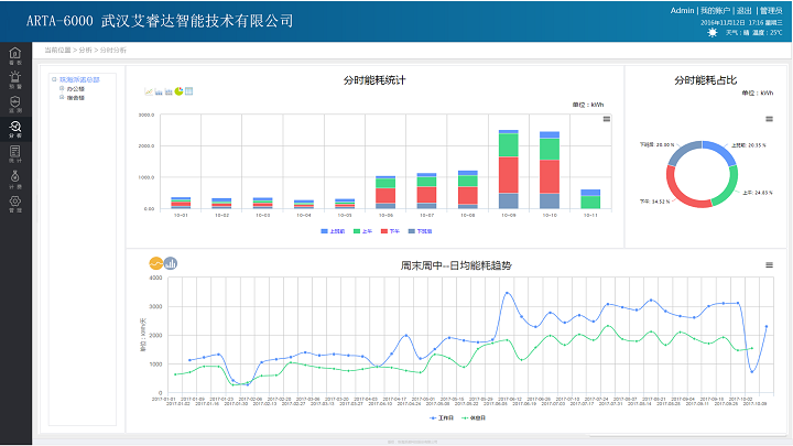 系统可对历史年/月/日或指定时段的各类能耗数据在物理空间、部门/科室、分类分项、重点设备等维度上进行分析。