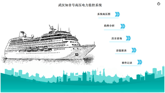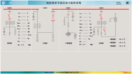 系统主界面显示系统时间,当前用户,通信状态和菜单导航,同时页眉显示项目名称信息。主界面连接所有的操作界面,进入子项的系统主接线图。系统主接线根据系统设计图纸,还原系统结构,并将实时信息进行显示,点击任一显示项,可以进入查询设备各项详细信息