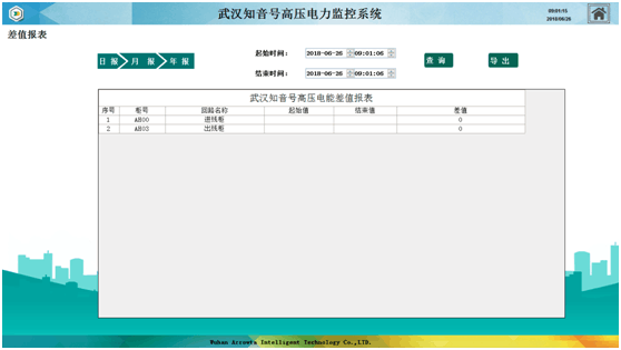 差值报表按时间划分成日月年三个子项,点击进入之后,可以勾选需要查询的对象,设置查询日期,即可查询历史数据,并可以导出到excel作为数据分析的依据