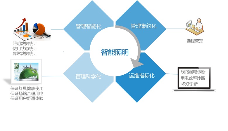 智能分析诊断监测系统可以分区域统计电能使用情况、坏灯区域及数量诊断为管理和节能出统计报告.